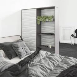 65.51″ Large Maddock Bookcase Room Divider With Faux Wave Pattern Graphite – Room & Joy