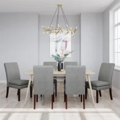 Set Of 2 Cale Upholstered Dining Chairs Gray Linen With Dark Base – Room & Joy