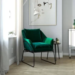 Introducing the timeless design chair that will beautify your living space – the Room & Joy Alisa Accent Chair. The Alisa comes in fashion-forward colors like to add style to any room and is upholstered in lush velvet for a smooth touch and feel while adding a flair of modern luxury wherever it is placed. The chair is designed for the ultimate comfort with plush cushioned back rest and seating, along with sloped armrests which ensure a comfortable and relaxing time whenever you sit on it. In addition, the metal framework wrapped around the chair not only highlights the sleek structure but also provides stability and durability throughout daily uses. Perfectly compliment your dining room, living room or office space, the Alisa Accent Chair will be a delightful addition for years to come.