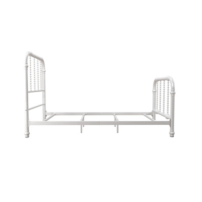 Every inch of the Emilia Metal Bed certainly invites your little dreamer to climb into! The Emilia is designed with soft curved spindles on the headboard, footboard and feet, and adorned with the diamond scrollwork for a complete timeless elegant appeal. It is crafted in sturdy metal frame with a center leg for added support and stability (requires foundation for mattress, sold separately). Available in classic white, charming pink and in twin or full, your child will be delighted to slumber in this bed anytime!