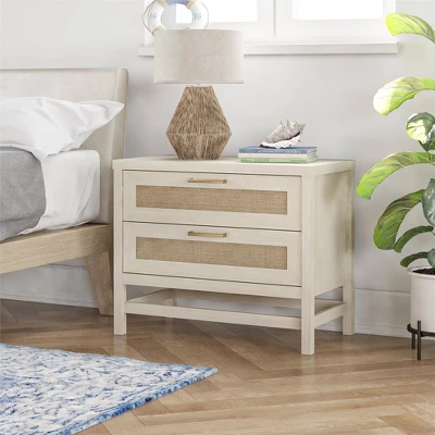 Latta 2 Drawer Nightstand With Faux Rattan Ivory Oak – Room & Joy
