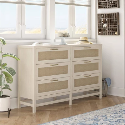 Latta 6 Drawer Dresser With Faux Rattan Ivory Oak – Room & Joy